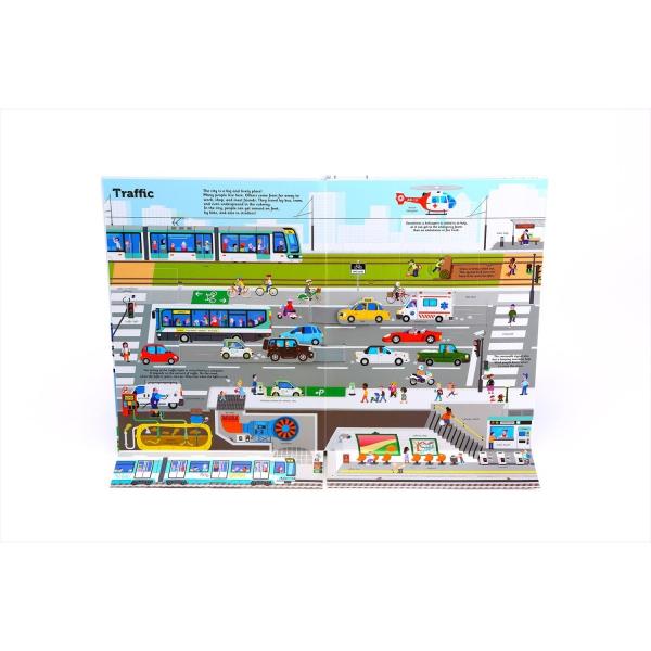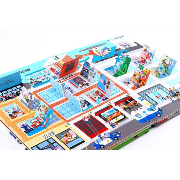 都市のさまざまな場面が集まったしかけ絵本。ふだん何気なく暮らしている街の仕組みが明快にわかります。55以上のしかけで子供と一緒に大人も楽しめるだけでなく、学ぶこともできるとっておきの一冊。