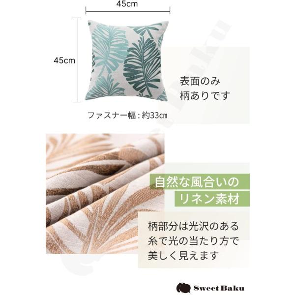 リネン素材でサラッとしてナチュラルなクッションは春から夏の季節にピッタリ グリーンの柄も一層爽やかさを引き立てます。