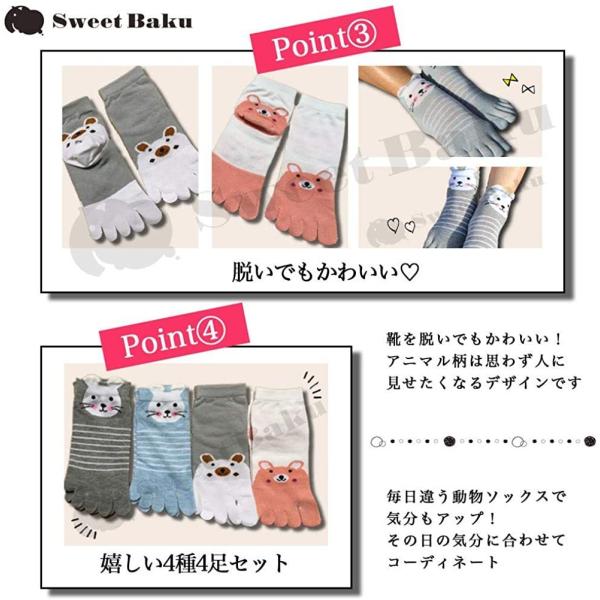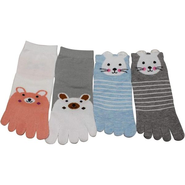 【メール便対応】 アクティブ女子のための 動物柄 ショート柄 5本指ソックス 4足セット 【フリーサイズ】