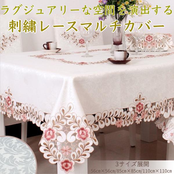 ラグジュアリーな空間を演出する 北欧風 刺繍レースのマルチカバー 正方形 サイズ(110cm×110cm)【メール便対応】