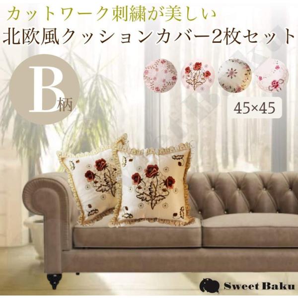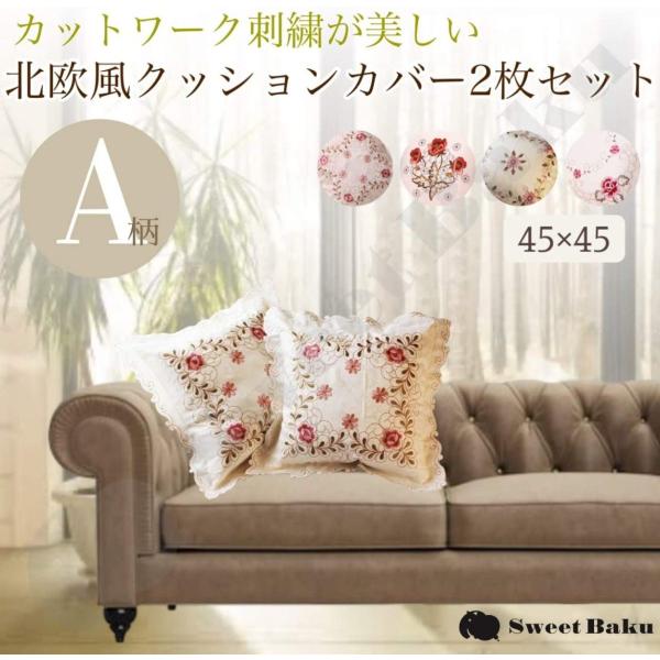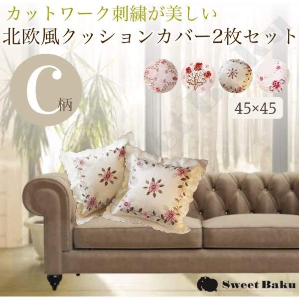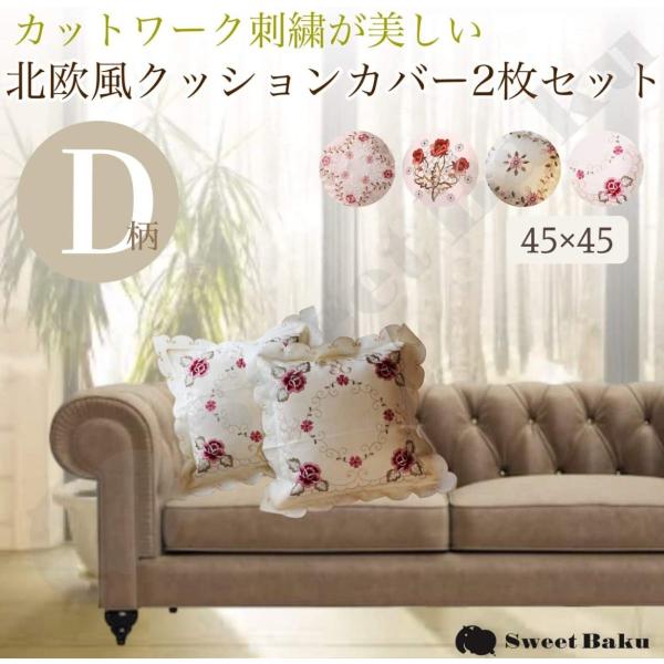 カットワーク刺繍が美しい 北欧風 クッションカバー サイズ:45×45cm 同色同柄の2枚セット 「ABCD」柄の中からお選びください。 【メール便対応】