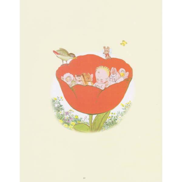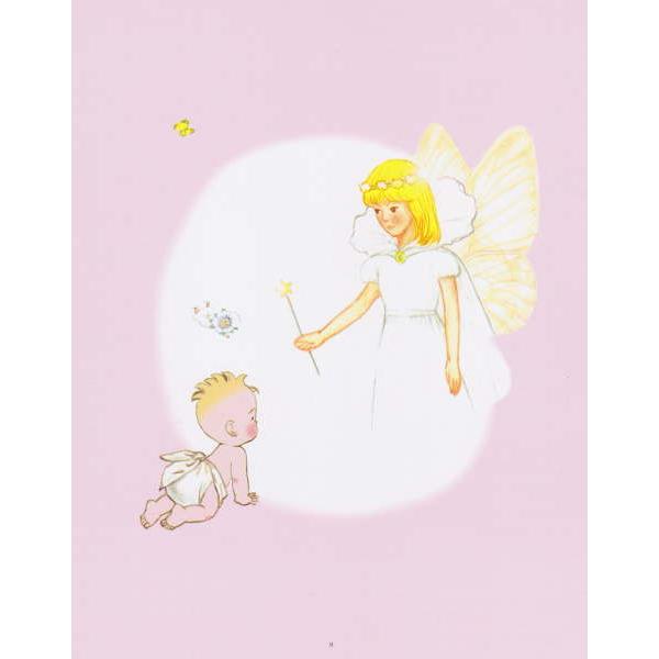 赤ちゃんを運ぶコウノトリがちょっと一休みしている間に、赤ちゃんは妖精たちと遊びます。とってもかわいくてほのぼのとします。