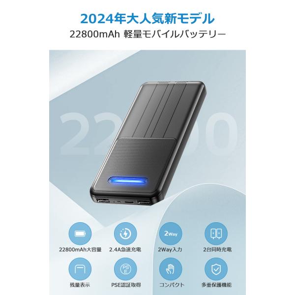 ●【22800大容量&2.4A急速充電】