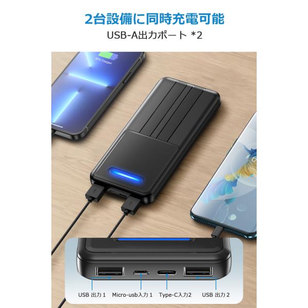 二つusbポートで2台同時充電は可能です。旅行、キャンプ、緊急時など非常時も安心して電力確保できます。