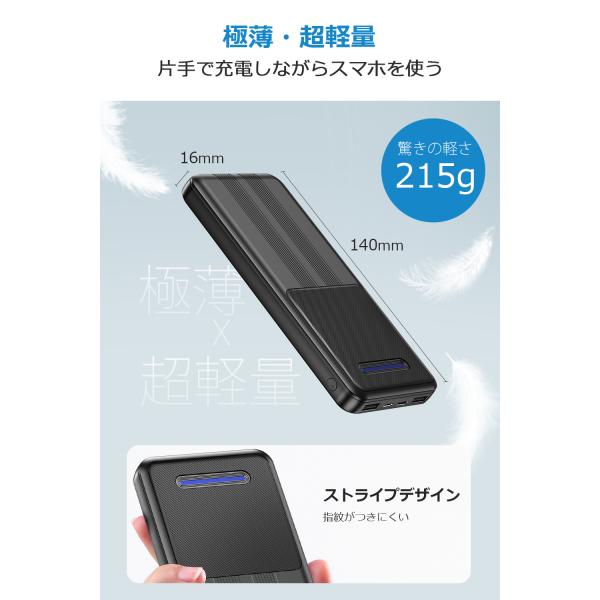 22800mAhの大容量により、1回フル充電すればスマホに数回に充電でき、充電切れの心配がありません。