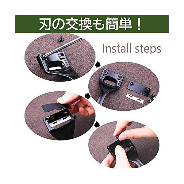 ・金属製の刃口は絶妙なカーブ構造になっているので、革生地にしっかりと引っかかり、お好みの厚さに調整しやすくなっています。ネジを外して簡単に分解出来る構造なので、刃の交換も簡単です。