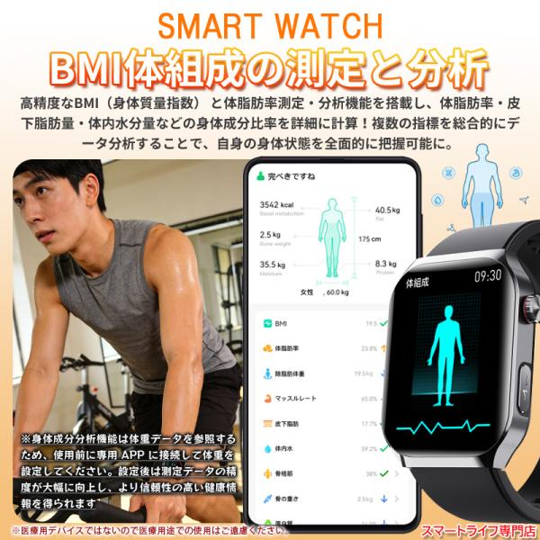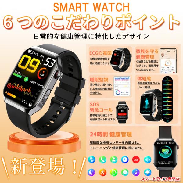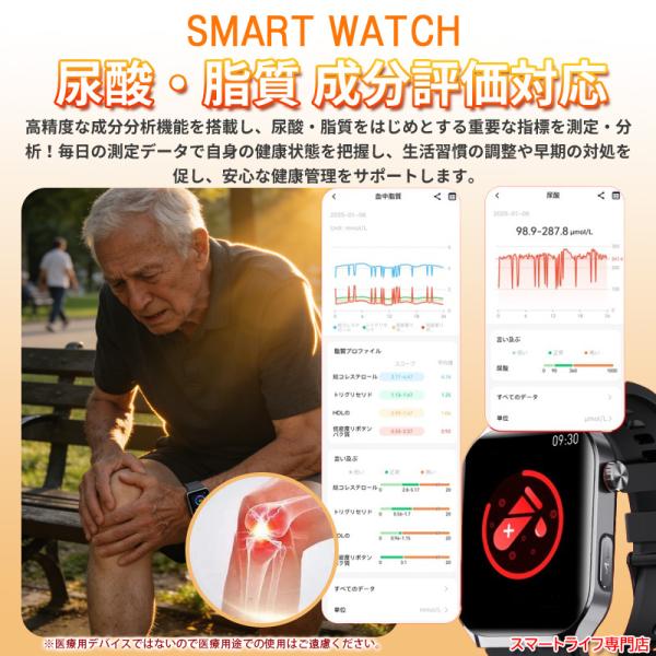 「業界最新モデル」スマートウォッチ 医療レベル 血圧測定 心拍数 心電図 体組成 血液成分分析 血中酸素 尿酸 血中脂質 SOS機能 睡眠 体温 呼吸 音楽再生 歩数計