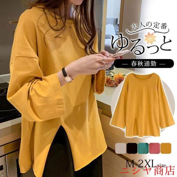 Tシャツ カットソー レディース トップス 七分袖 長袖 秋 春 Tシャツ ロンT インナー 重ね着 ゆったり 部屋着 婦人服 カジュアル 上着