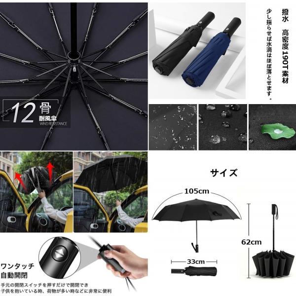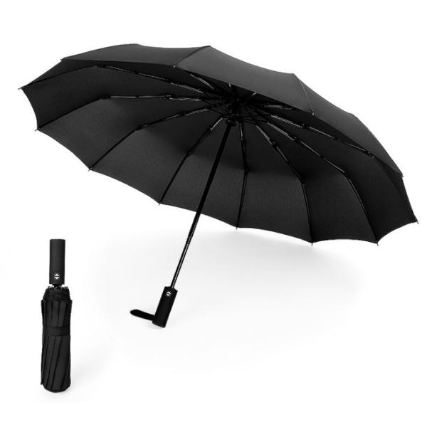 【並行輸入品】12本骨 耐風 自動開閉 折りたたみ傘 《ブラック》 撥水 ワンタッチ 晴雨兼用 日焼け防止 ..