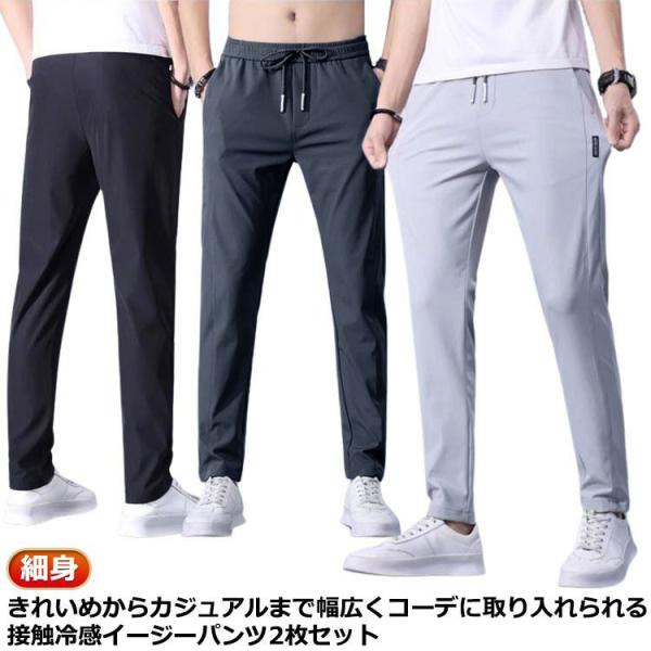 アイスシルクパンツ 接触冷感 2枚セット ビジネスパンツ 涼しい カジュアルパンツ 接触冷感 涼感 カジュアルパンツ 細身 パンツ アイスシルクパンツ