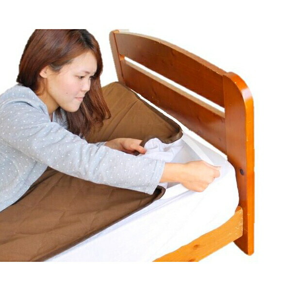 裏側四隅ゴムベルト付きでベットにも敷ふとんにもワンタッチで着脱できます。