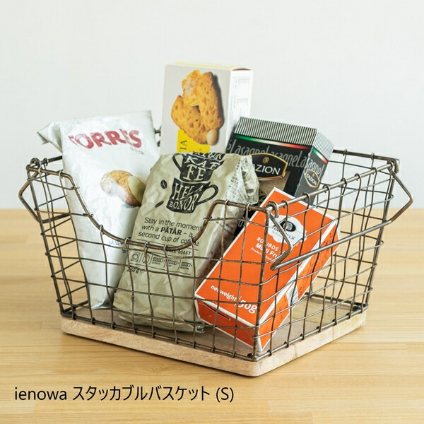 ienowa スタッカブルバスケット (S) 生活雑貨 収納用品 かご バスケット 201200659 取っ手付き 持ち運び 小物 収