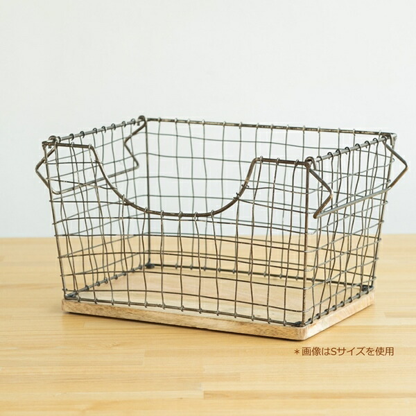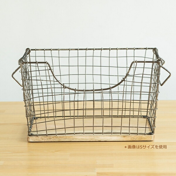 アンティーク調のワイヤーを編んで、底板には天然木を組み合わせました。