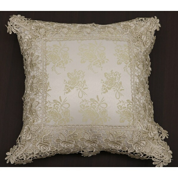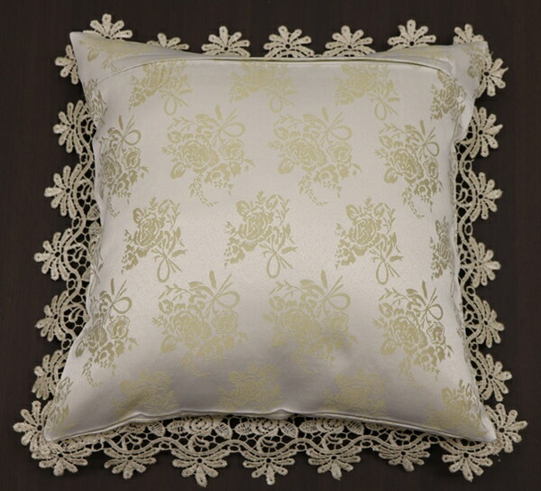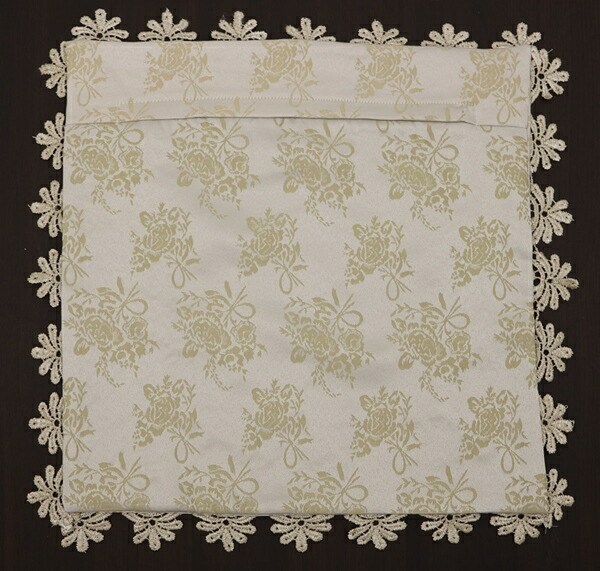 バラ柄ジャガード織の生地にバラのレースを付けた上品なクッションカバーです