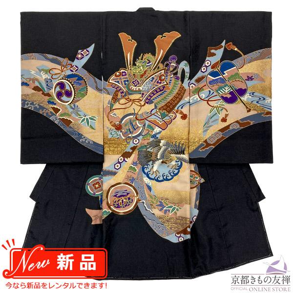 (レンタル) お宮参り 産着 男の子 着物 正絹 初着 祝着 長襦袢 ベビー 黒 兜 カブト 古典柄 熨斗目 掛け着物 祝い着 (5泊6日) 爆買