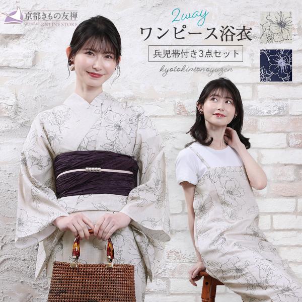 浴衣 セパレート浴衣 帯 2点セット レディース 兵児帯 2点セット 2way ゆかた モダン 着物 和装 (翌日配送対象) (ゆうパック) 爆買