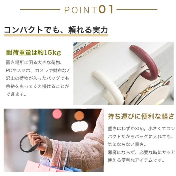 このテーブルフックがあれば、バッグやを清潔・安全に吊るすことができ、床に置く必要がありません。
