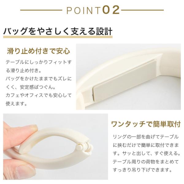 おしゃれで便利なテーブルフックは、外出先やオフィスで大活躍。