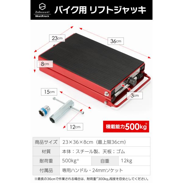 【国際規格品】持ち手付きに改良!バイクジャッキ 小型 耐荷重500kg ソケットアダプタ付 コンパクトフロアジャッキ バイクリフト バイクメンテナンス