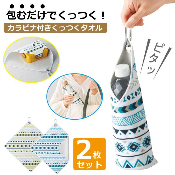 くっつき タオル くっつく クロス 2枚セット 吸水クロス ぺたぺた ペタペタ 北欧 カラビナ付き ハンカチ 風呂敷 お弁当 ペットボトル 傘 カメララップ