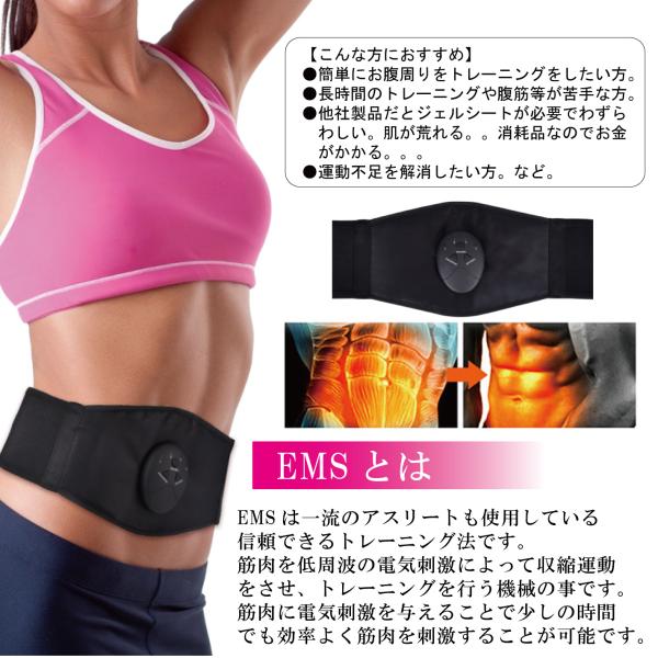 EMS 腹筋ベルト 腹筋 ベルト ジェル不要 男女兼用 パッド 腹筋マシン 筋トレ ダイエット トレーニング 腰痛 お腹痩せ 電池式 母の日
