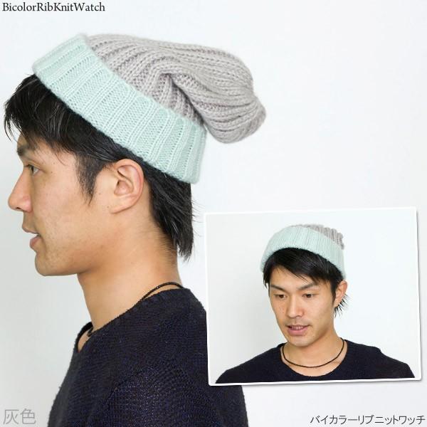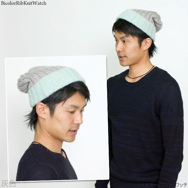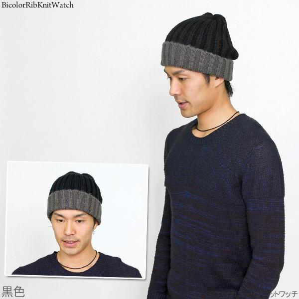 合わせやすいバイカラー☆着用感のよいニット帽 メンズ 帽子 冬