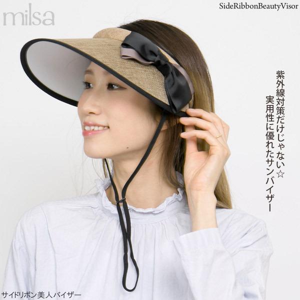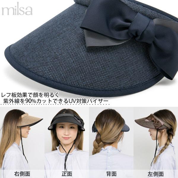サンバイザー あご紐 レディース あごひも UVカット UV対策 紫外線対策 リボン 吸湿速乾 吸汗 春夏 ベージュ ブラウン ブラック ネイビー エレガント カジュアル 最旬 キレカジ セレカジ ナチュラル milsa おしゃれ かわいい 10代 20代 30代 40代 50代 60代
