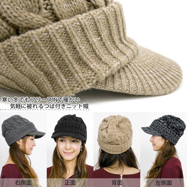 ニット帽 つば付き レディース 秋冬 裏起毛 帽子 キャスケット