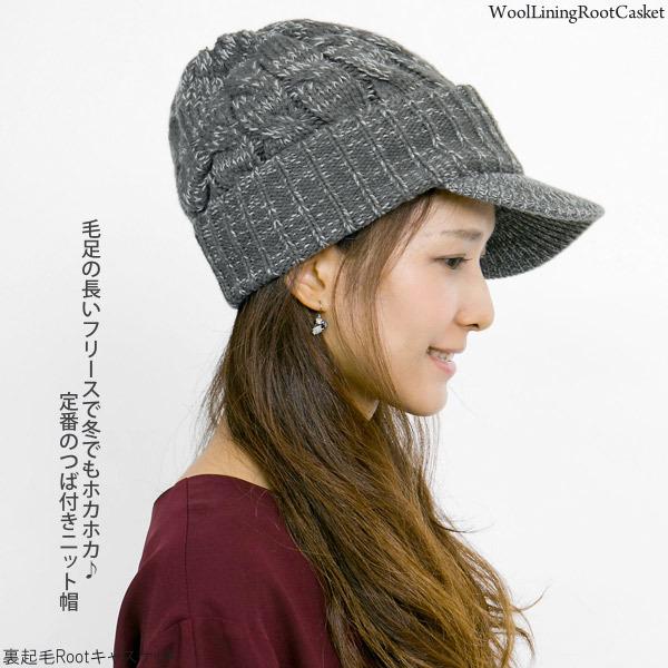 ニット帽 つば付き 帽子 レディース 秋冬 裏起毛Rootキャスケット