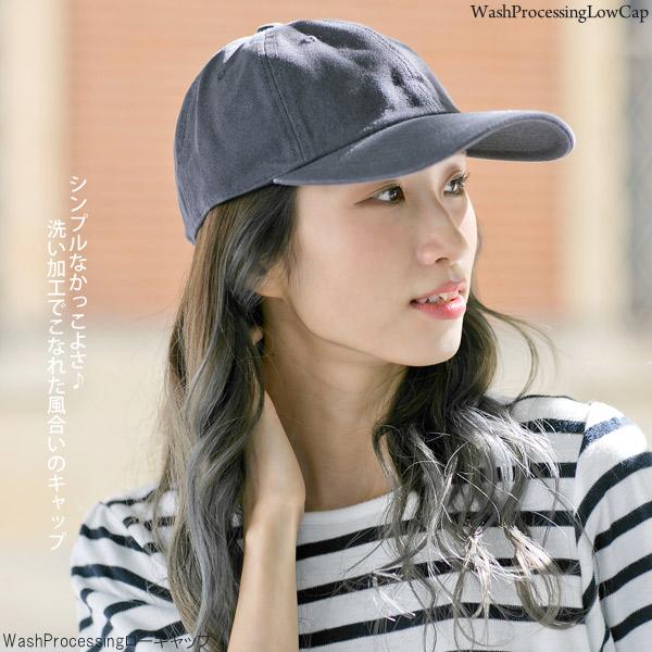 キャップ レディース 帽子 春夏 メンズ 浅め 小顔効果 UV WashProcessingローキャップ