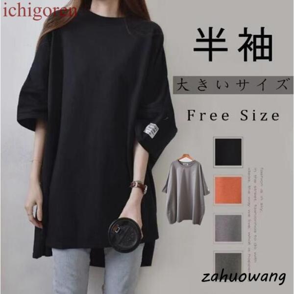 Tシャツ ロング丈 チュニック 半袖 体型カバー ゆったり トップス おしゃれ 韓国ファッション