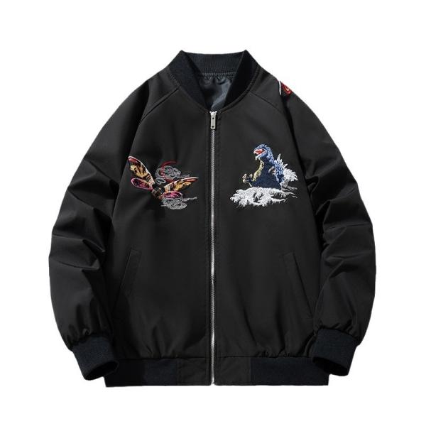 スカジャン メンズ 刺繍 横須賀 アウター 光沢 サテン ブルゾン 中綿 春秋 長袖 ゴジラ獣 バイク スカジャン風 和柄 和風 男女兼用 カジュアル 送料無料