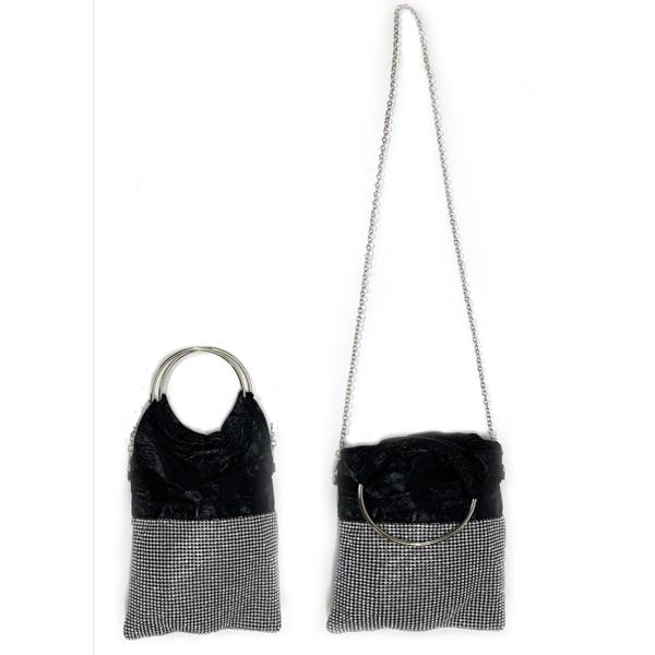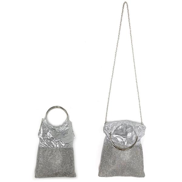パーティバッグ ポーチ ショルダー キラキラ ラインストーン シルバー デコ 9190-3