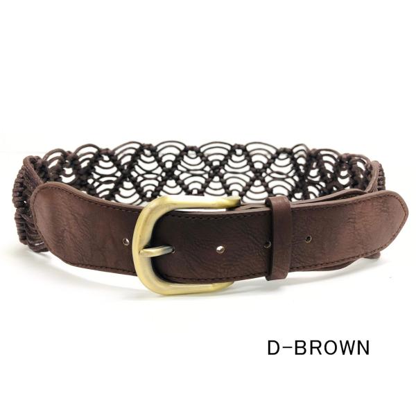 マクラメ編み レディースベルト 編込み 太 幅広 サイズフリー【送料無料】 macrame-A