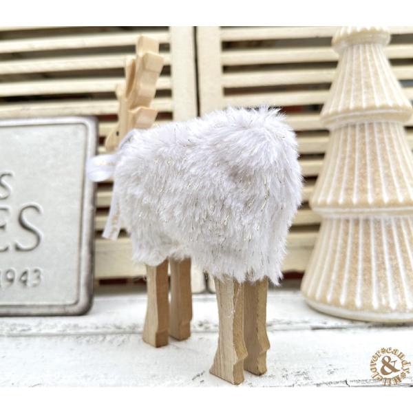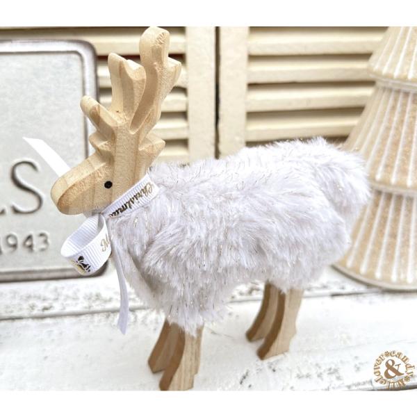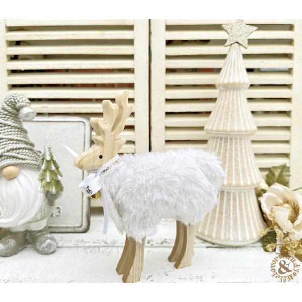 クリスマス雑貨 もこもこトナカイ ファー ウッドディアースタンド / オーナメント クリスマス 雑貨 ナチュラル 雑貨 ディスプレイ