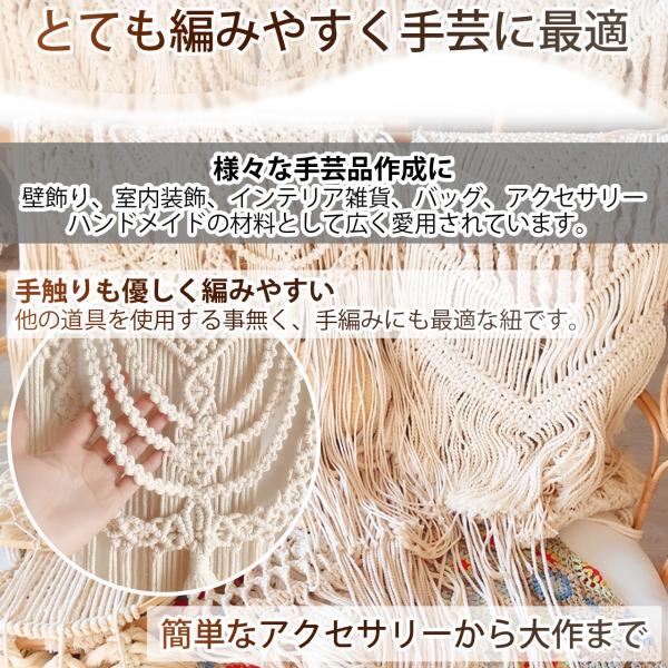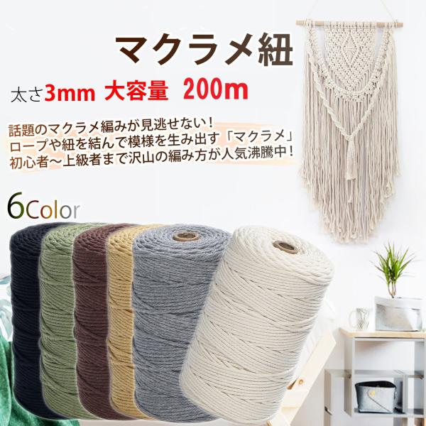 マクラメ コード 3mm 200m 紐 コットン 綿 糸 ロープ マクラメ編み タペストリー DIY ハンドメイド