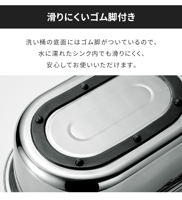 爆買 洗い桶 ステンレス製 たらい オーバル型 流水穴付き ゴム脚 深型 下ごしらえ 桶 おけ キッチン用品 つけ置き洗い 食材 食器 シンク周り 新生活 一人暮らし