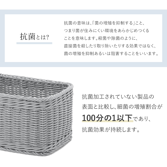 見た目は籐のかごですが、実は抗菌樹脂製バスケット。