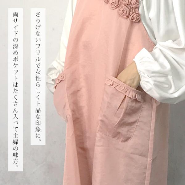 エプロン おしゃれ かぶるだけ 保育士 かぶり 花モチーフ ゆったり 撥水 ワンピース ナイロン フリル 無地 ロング丈 エプロンドレス プレゼント ギフト