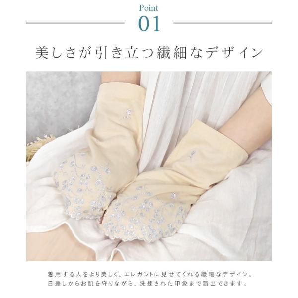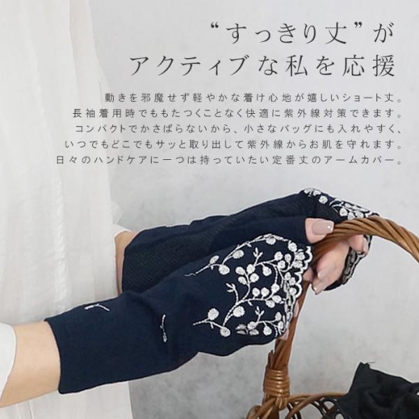 uv手袋 アームカバー おしゃれ uvカット 指なし ショート 滑り止め 綿 100% 刺繍 かわいい 可愛い 紫外線対策 紫外線予防 プレゼント ギフト _UV