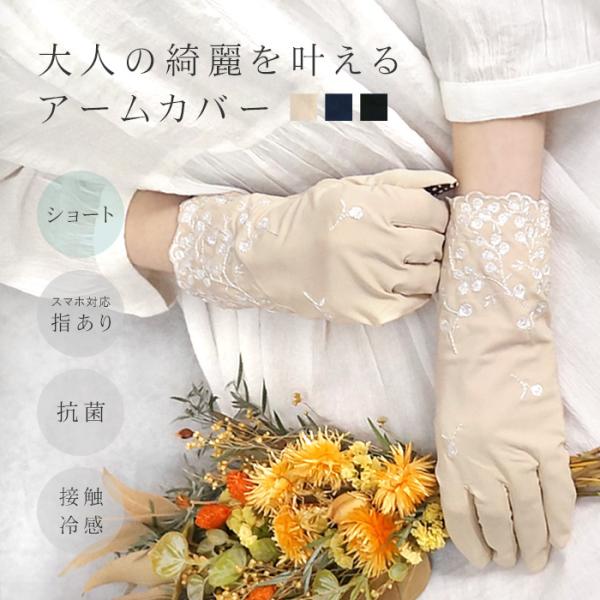 uv手袋 アームカバー おしゃれ uvカット 指あり ショート スマホ 滑り止め 刺繍 冷感 抗菌 防菌 速乾 紫外線対策 紫外線予防 プレゼント ギフト _UV