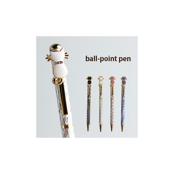 ネコシルエット おすわり スワロフスキークリスタル ボールペン(クリップボールペン ロール式 可愛い 猫雑貨 猫 文具) 即納