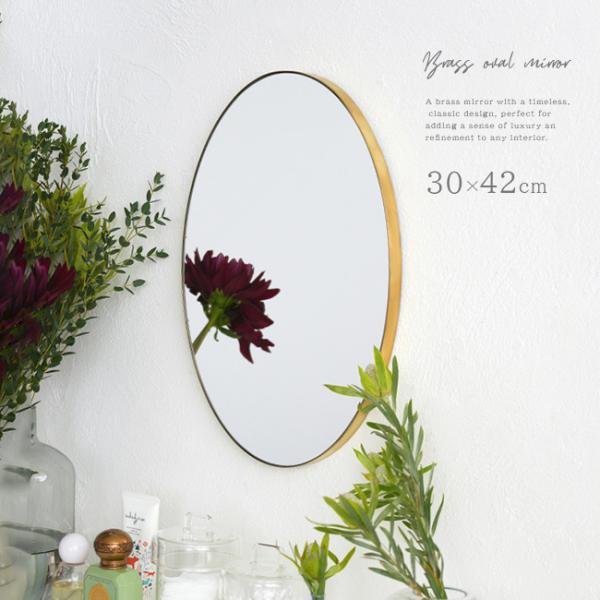 Brass oval mirror HS3684(壁掛けミラー 楕円 オーバル アンティーク 風 洗面鏡 洗面所 トイレ 真鍮 鏡 楕円形 壁掛け)