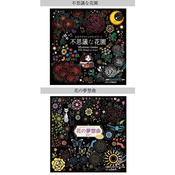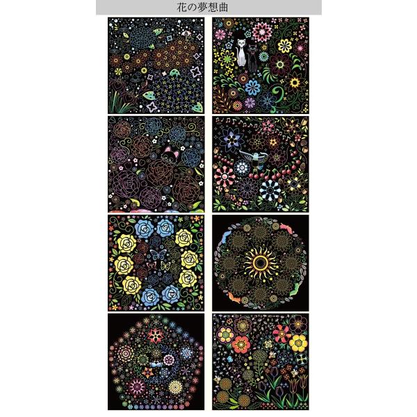 塗り絵のように楽しめるスクラッチアート ぬりえのような削るアート 大人 子ども 色鮮やかで美しいスクラッチペン付 花柄 ぬり絵のようなアート