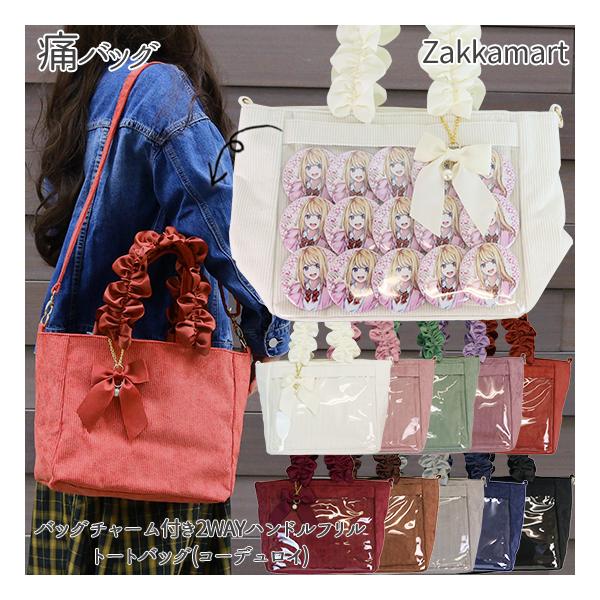 痛バッグ トート ビニールトートバッグ 魅せトート 痛バ ザッカマート zakkamart バッグチャーム付き2WAYハンドルフリルトートバッグ コーデュロイ