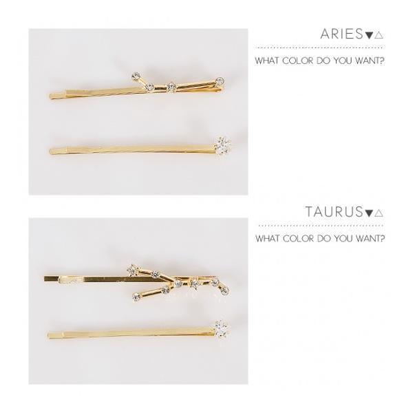 シンプル ヘアアクセ ゴールド ダボピン ピン ヘアピン フレームピン 星座 レディース アクセサリー 12星座モチーフヘアピン2本セット