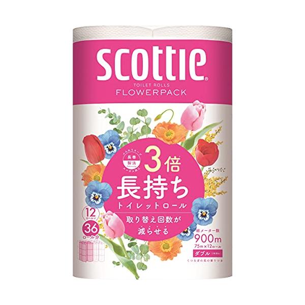 スコッティ フラワーパック 3倍長持ち トイレット75mダブル ホワイト 12ロール
