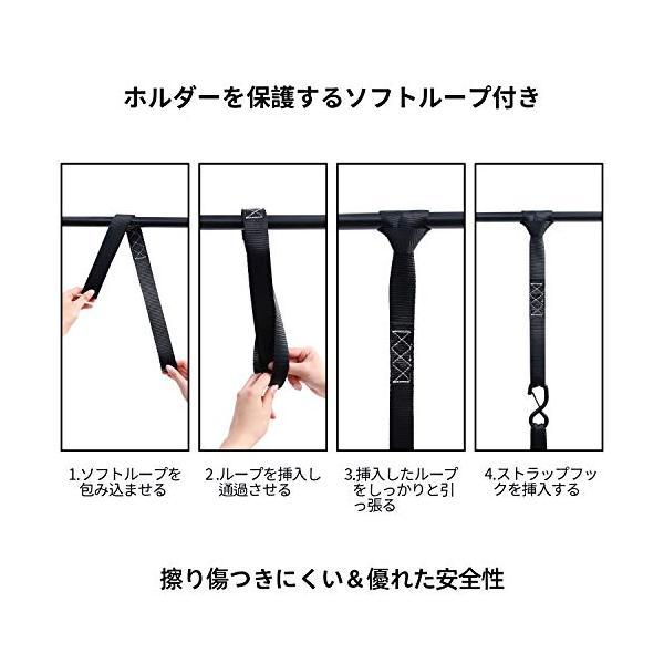 ・【ストッパー付きS字フック】:外しにくいストッパー付きS字フックにはコーティングされ、耐摩耗性のナイロンソフトループにより、ホルダーと荷物を擦り傷から守ります。