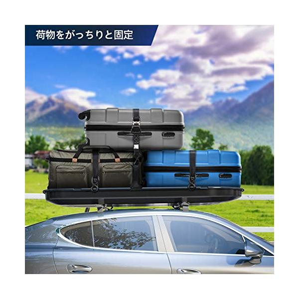・【最大荷重500kg&破断荷重1490kg】:高品質ポリエステルを採用して、固定側に補強ステッチが施されたストラップはしかっりと貨物の安全を守ります。