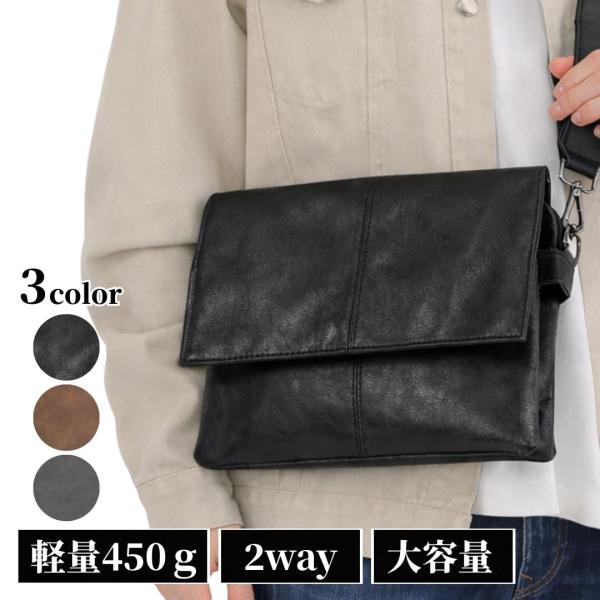 ショルダーバッグ メンズ 2Way 大容量 カジュアル 通勤 通学 ビジネス 肩掛け B5サイズ タブレット入れ PUレザー 20代 30代 40代
